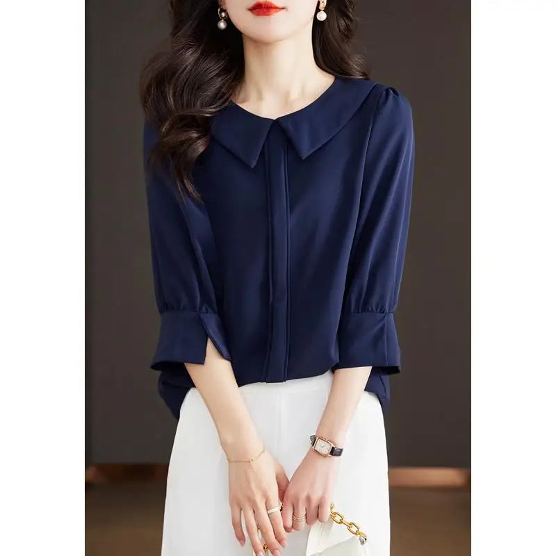 Breathe easy in effortless style with the Elise Breezy Charm Blouse. Designed for modern minimalism, this relaxed-fit blouse features graceful three-quarter sleeves, a clean neckline, and a soft, lightweight drape that moves with you.