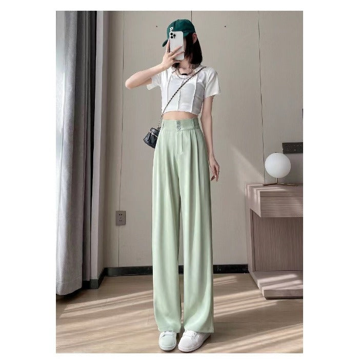 Experience effortless elegance with the Ice Silk Wide-Leg Trousers, designed for ultimate comfort and style. Made from lightweight, breathable ice silk fabric, these trousers drape beautifully and feel luxuriously smooth against the skin.