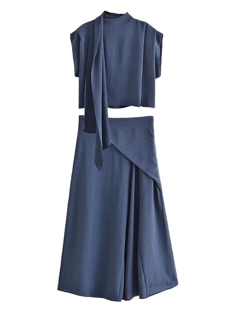The lightweight, high-quality fabric ensures comfort and a flattering fit, while the asymmetry adds a touch of edge to the sophisticated design. Perfect for formal events, workwear, or stylish evenings, this set transitions seamlessly from day to night.
